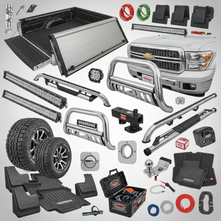 Upgrade your driving experience with seat covers, floor mats, dash covers, sunshades, console organizers, phone mounts, cup holders, interior lighting, cargo liners, headrest monitors, backup camera systems, GPS navigation, dash cams, Bluetooth adapters and OBD2 readers, premium speakers and subwoofers, truck alarm systems, LED headlights, fog lights, rock and underbody lighting, auxiliary switches, power inverters and outlets, remote start systems, heated seats, seat warmers, heated steering wheel covers, and window deflectors.